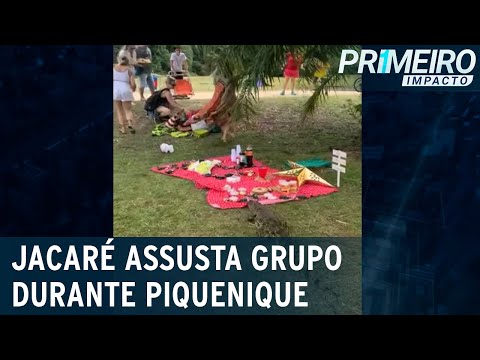 Enquanto parte do grupo filmava a cena, outra tentava salvar os quitutes de serem abocanhados. Um dos vídeos, publicado no perfil A Folha do Bosque, no Instagram, mostra o animal calmamente saindo de perto de um lago e indo em direção ao grupo de amigos. A cerca ao redor da água não impediu o passeio, pois são apenas estacas fincadas no gramado. Os amigos estavam no local, próximo ao lago, desde as 10h. Comidas e bebidas estavam arrumadas sobre uma toalha estendida próxima a uma árvore e se tornaram o alvo do réptil.